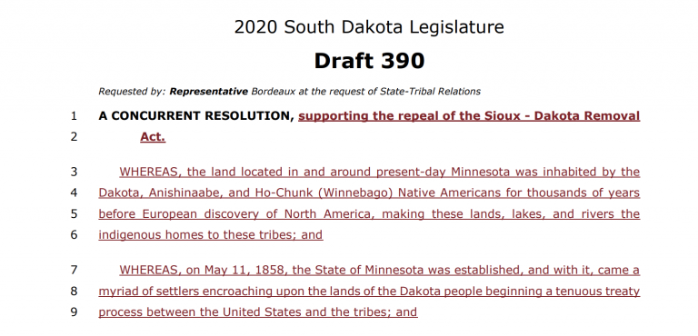 South Dakota House committee rejects resolution to urge Congress to resend Sioux-Dakota Removal Act Maine considers whether to revise its legal relationship with tribes as public gives testimony at hearings