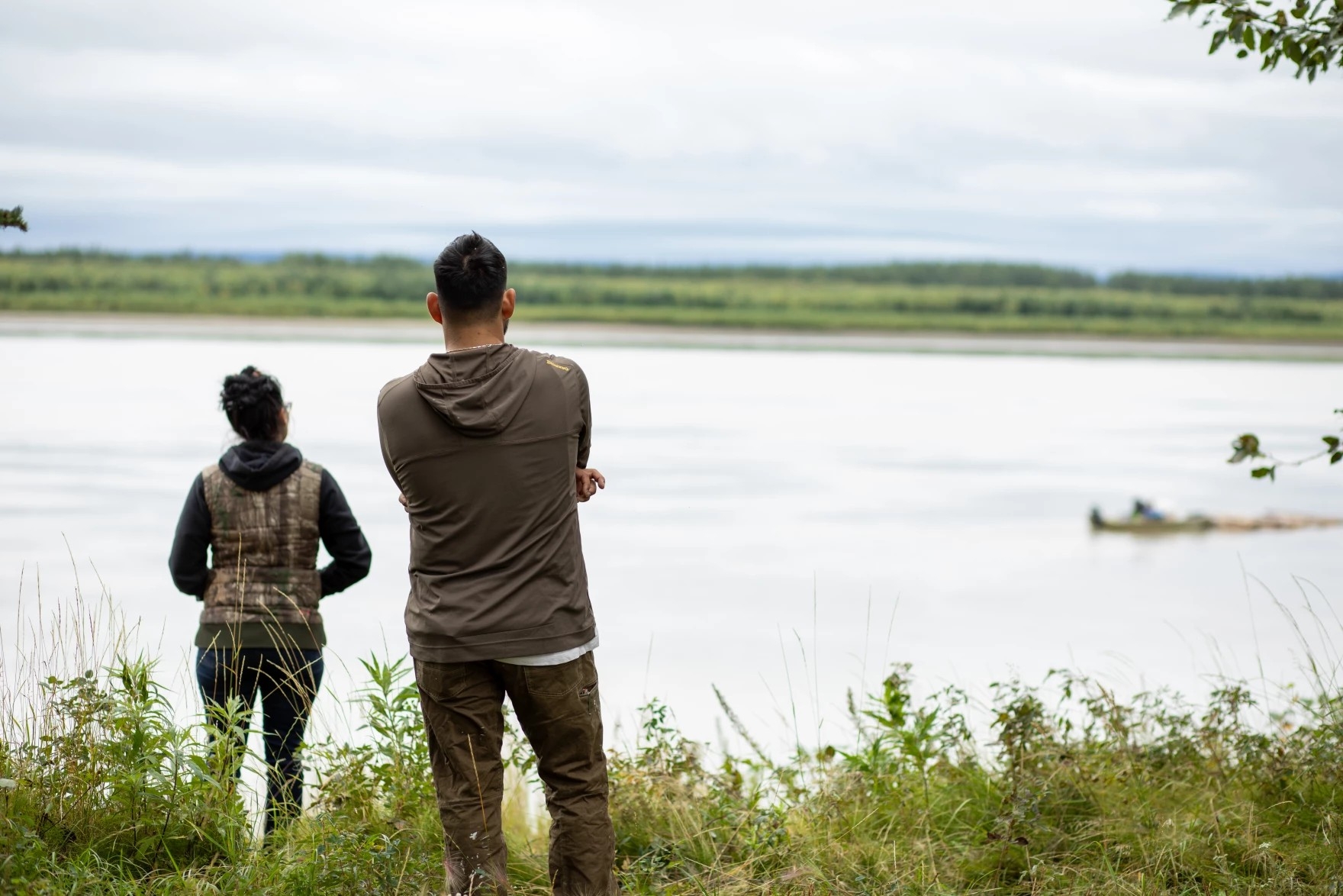 Two community members in Galena, Alaska stand on the shore of the Yukon River, which no longer feeds their families. (Courtesy Arctic Yukon Kuskokwim Tribal Consortium)
