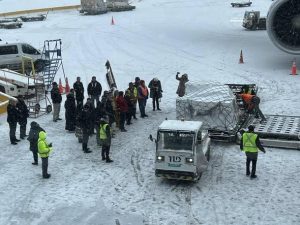 There were 62 items in large crates on board the plane that landed on Saturday morning.