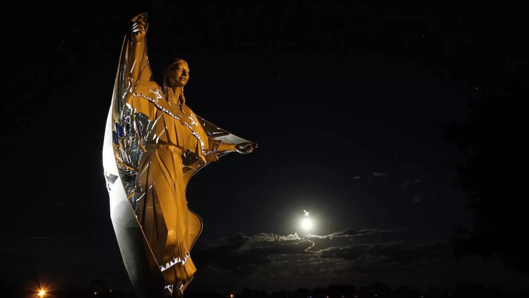 Dignity of Earth and Sky is a sculpture on a bluff overlooking the Missouri River near Chamberlain, S.D. (Courtesy SDPB)