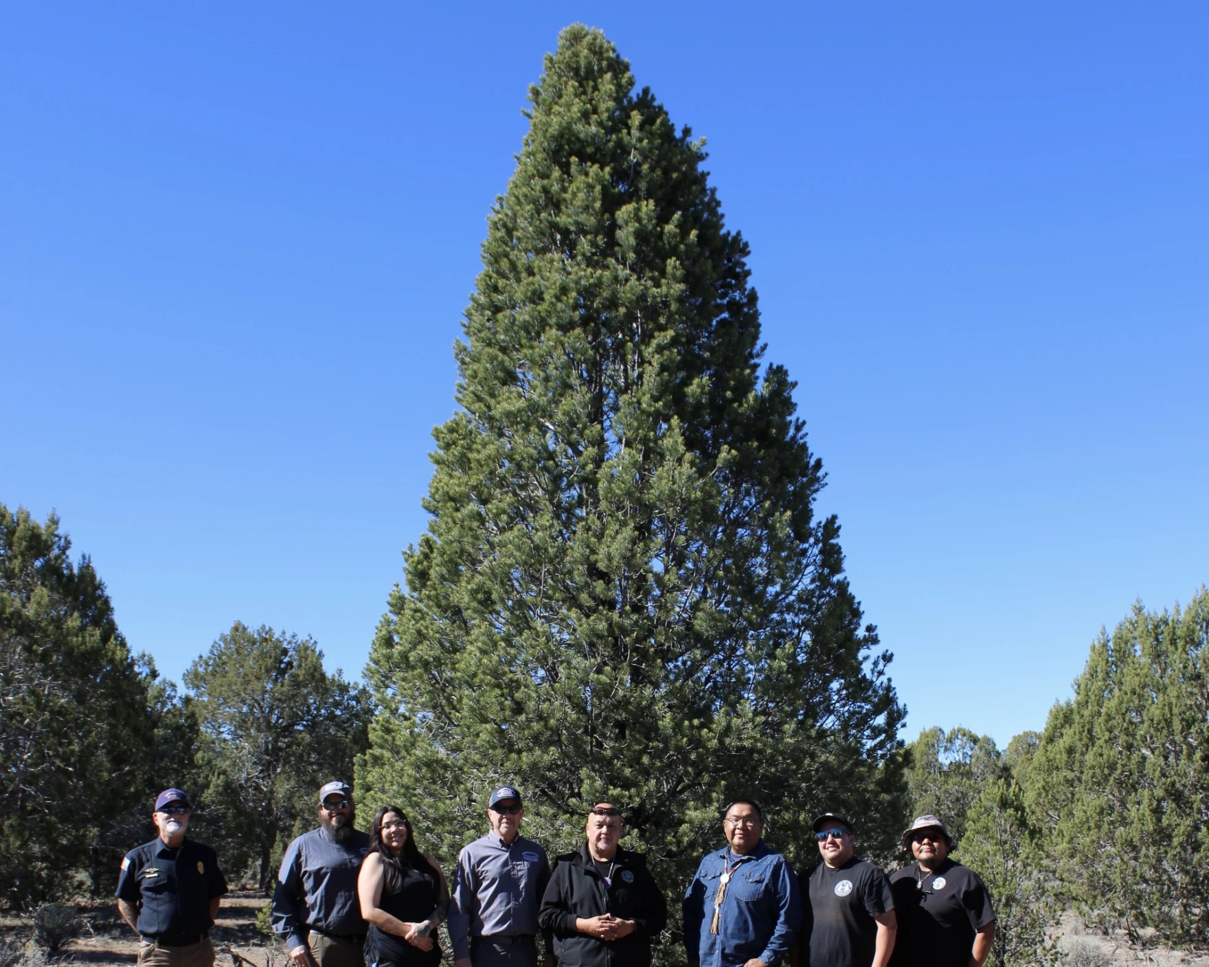 Members of the Hualapai Tribe stand in front of the 2025 Capitol Christmas tree. (Courtesy Hualapai Tribe)