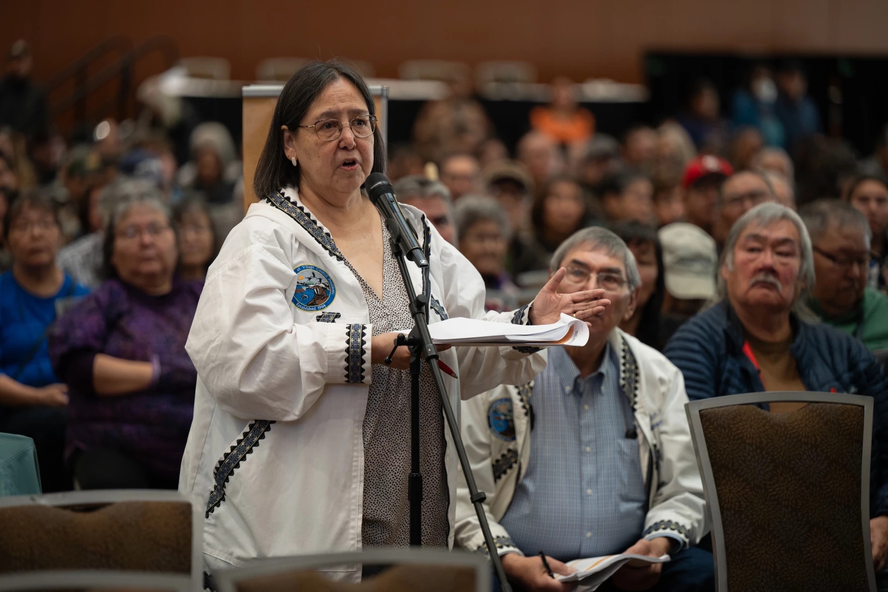 The Association of Village Council Presidents CEO Vivian Korthuis speaks at Alaska Federation of Natives convention on Saturday, October 18, 2025. (Photo: Matt Faubion / Alaska Public Media)