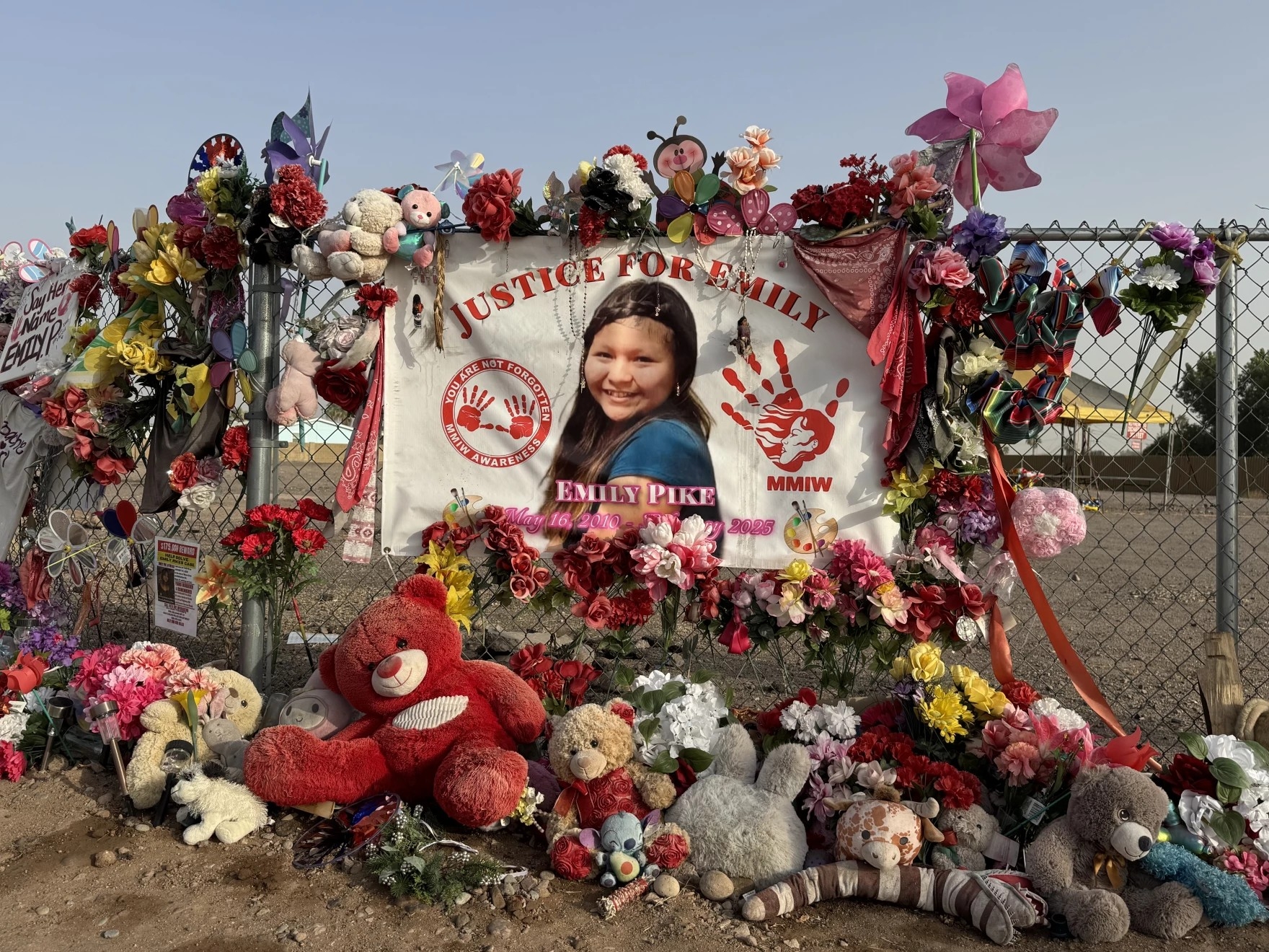 A tribute to slain teen Emily Pike adorns a fence in Mesa, Ariz. (Photo: Gabriel Pietrorazio / KJZZ)