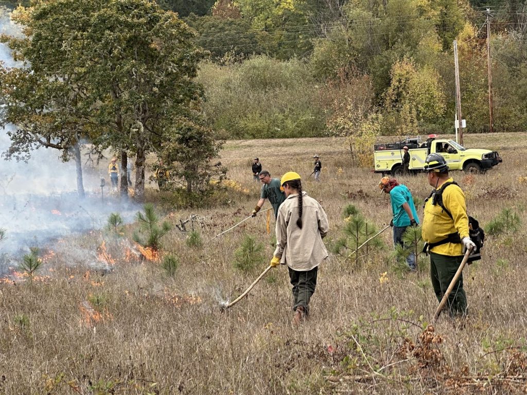 Five interns with the Long Tom Watershed Council’s Traditional Ecological Inquiry Program (TEIP) and a few dozen staff members, fire bosses, and agency employees gathered at the Chaa-lamali Reserve.