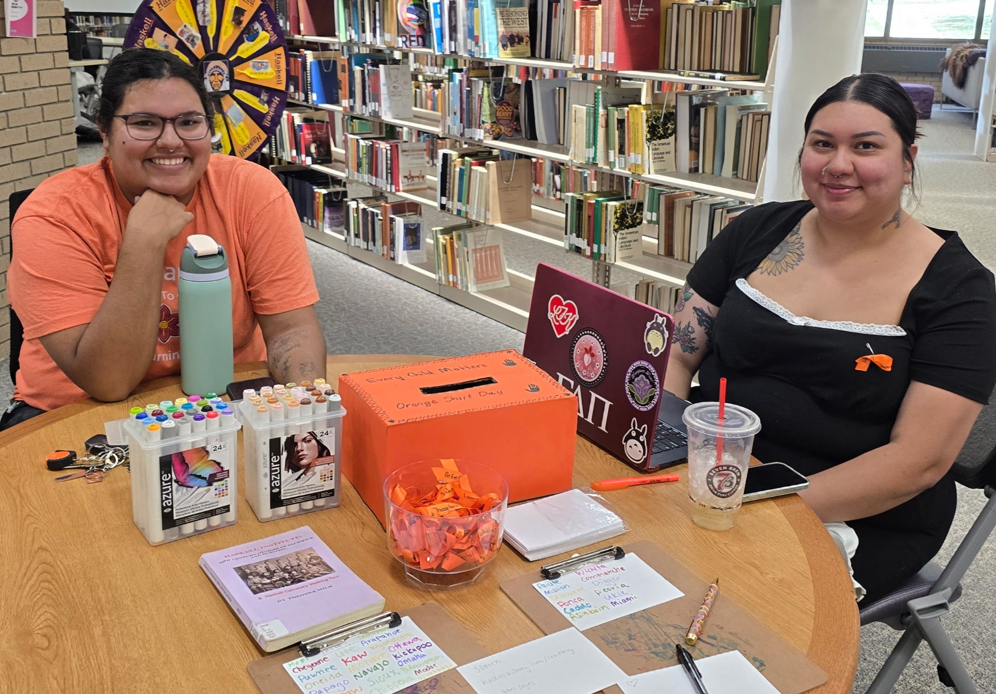 Haskell students Abigail Lowe and Denise Flores Frazier. (Photo: Rhonda LeValdo)