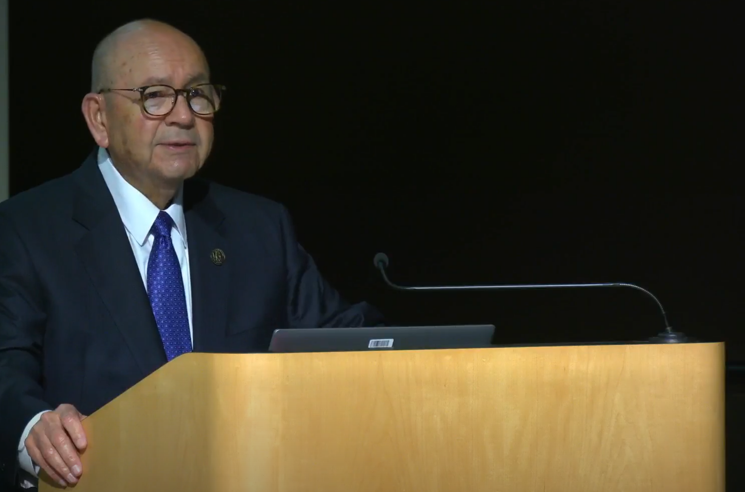 Chickasaw Nation Governor Bill Anoatubby speaks during the Cultural Night at the Anoliˈ Theater in the Chickasaw Cultural Center. (Courtesy Chickasaw Nation / Facebook)
